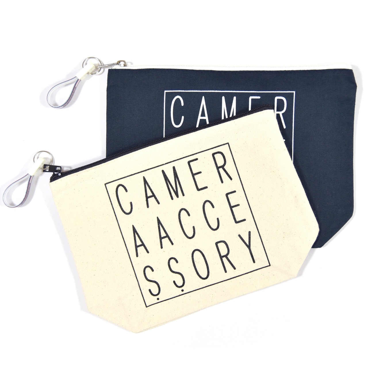 ファスナーの開け閉めに便利なオリジナルのCAMERAレトロキーホルダーが付属。